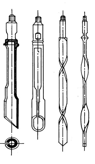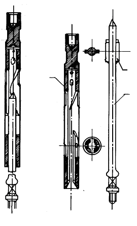 ♦ Curatitorul tubular (teaca) - tip A (fig. 4.6.a.) consta dintr-un corp tubular cu o taietura longitudinala, avand diametrul mai mare la partea inferioara (cu cativa mm mai mic decat diametrul interior al tevilor prin care se introduce). Partea terminala a corpului este taiata la 450, pentru a asigura o avansare mai usoara, dar si o razuire mai buna a parafinei de pe peretii tevilor de extractie. La partea superioara este sudata o reductie pentru legatura cu prajina grea.