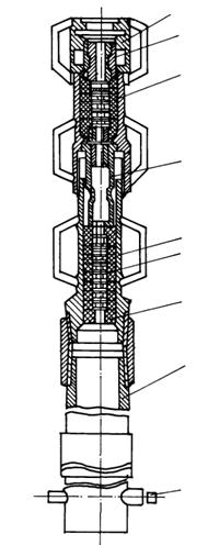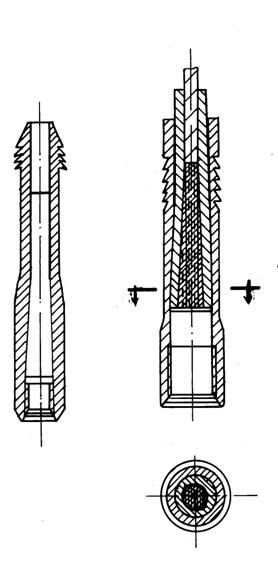 a) Racordul fix pentru cabluri cu diametrul de 12 - 18 mm (fig. 4.8.a). El este construit dintr-o bucata de teava de otel care are la partea inferioara filet pentru insurubarea la prajina grea, iar la partea superioara are diametrul mai redus si prevazut la exterior cu santuri circulare pentru a putea fi prins cu corunca in cazul ramanerii in sonda. In interior racordul are o gaura care este cilindrica jumatate din lungime, iar cealalta jumatate este conica. Din acest tip de racord cablul nu se poate scoate decat prin taiere;