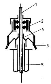 Incalzitorul cu inductie (fig. 4.20) consta dintr-un corp cilindric de metal (teava de extractie), imbracat cu material izolant peste care se infasoara o bobina cu sarma de cupru, acoperita la randul sau cu material izolant si intregul ansamblul este inchis intr-o manta.
