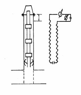 Incalzitorul electric cu rezistenta (fig. 4.19) consta din doi conductori legati in serie, cu rezistente diferite. Acesti conductori sunt coloana de tevi de extractie echipata cu mufe izolate si coloana de exploatare.