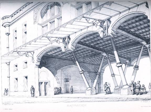 De douazeci de ani am vazut inginerii incercind sa utilizeze firul intr-o noua maniera, sa-l transforme in mijloc structural. De la Pont des Arts la noile poduri tubulere este un pas imens, dar nici inginerii, nici arhitectii nu au stiut inca sa asocieze intr-o maniera cu adevarat satisfacatoare zidaria cu structura de fier ; sint totusi multe cazuri in care structura de zidarie nu ar putea fi inci inlocuita. Nu e de loc posibil sa obtii un spatiu sanatos, cald iarna, racoros vara, sustras variatiilor de temperatura numai cu ajutorul firului. Peretii, boltile din zidarie vor prezenta intotdeauna avntaje superioare oricaror alte moduri. Trebuie deci sa ne limitam sa continuam, in multe circumstante, sa inlocuim zidaria. O putem asocia cu structura metalica ? Fara indoiala, dar cu conditia ca cele doua moduri de construire sa-si conserve fiecare proprietatile, sa nu se asocieze pentru a se distruge reciproc. Metalul , fonta sau otelul, este supus de altfel unor variatii de care trebuie sa tinem cont; trebuie deci sa-i acordam o oarecare libertate; sa nu-l inglobam in zidarie, sa-i conservam rolul independent.