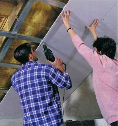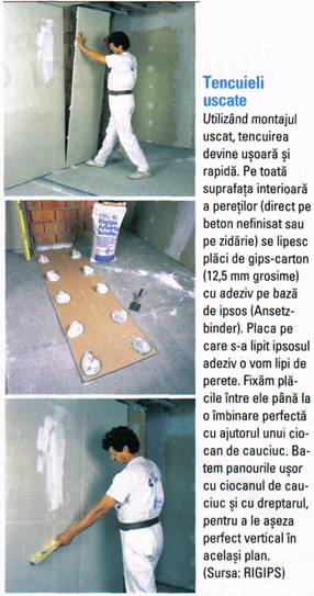 de gips-carton pe pereti la interior. Se poate face direct (prin lipire pe