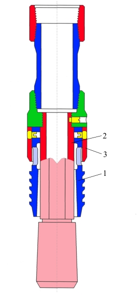 Extractorul are un cep elastic (1) cu filet exterior fierastrau stânga conjugat cu filetul din interiorul racordului superior al pacherului si un orificiu poligonal la interior care-i permite sa alunece pe un limitator (2), fara sa se roteasca pe acesta. ďn partea de sus cepul elastic este îmbracat de un opritor (3) care limiteaza adâncimea de patrundere a cepului elastic în interiorul racordului superior.