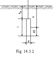 De exemplu, rezistenta de dispersie pentru un electrod cilindric (teava) cu diametru d si lungimea l >> d, ingropat vertical in pamant, la distanta h0 > 0,5 m fata de suprafata solului (fig. 14.3.2) se calculeaza cu expresia :