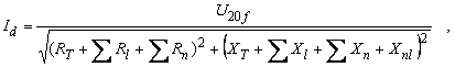 Curentul de defect este determinat de impedanta totala a circuitului : transformator, conductoarele de linie si conductoarele de nul ale retelei, fiind dat de relatia :