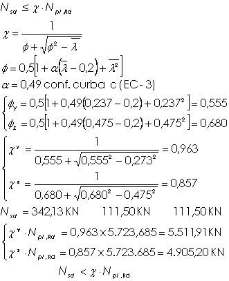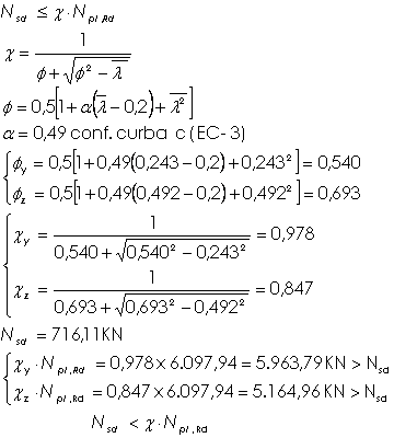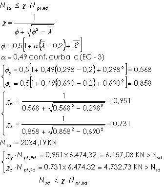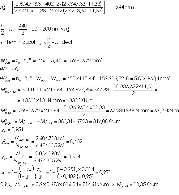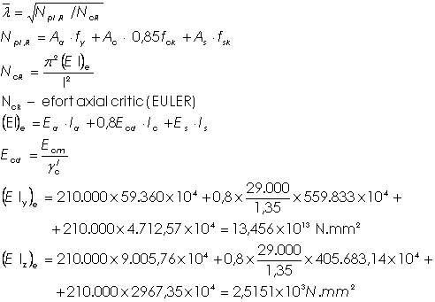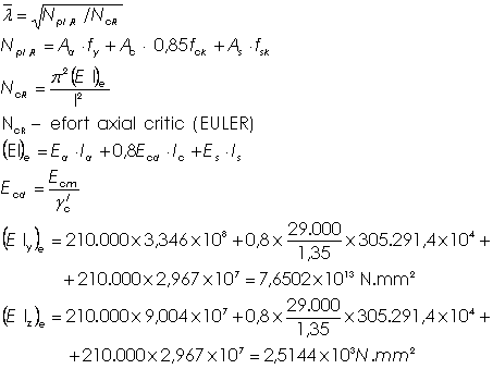 - Verificarea se poate face dupa metoda simplificata din EC-4 (4.8.3) deoarece sectiunea este dublu simetrica si este constanta pe toata lungimea stilpului.