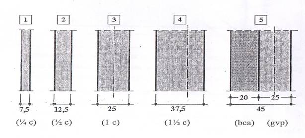 b). Pereti interiori portanti vor fi numai din zidarie de caramida plina, respectiv de o caramida ( I c.p ), cu grosime nominala dn = 25 cm;