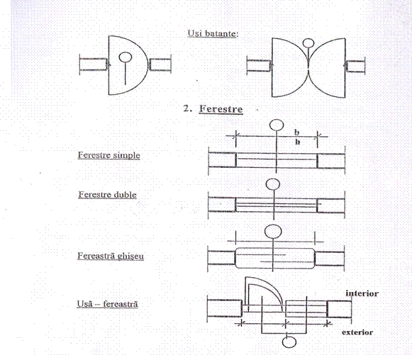 Reprezentarea conventionala a golurilor de usi si ferestre la cladiri civile este reglementata de STAS 1434/83 . Dintre tipurile de tāmplarie au fost selectionate cele adecvate tipului de cladire care se analizeaza.