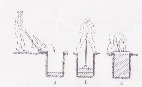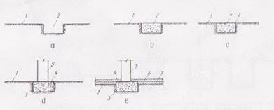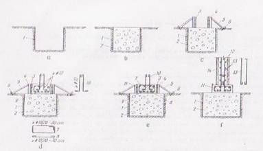 a) executarea gropii de fundatie ; b) turnarea si compactarea betonului in blocul fundatiei