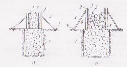 6. legatura cu sarma ; 7. bloc de fundatie ; 8 soclu.