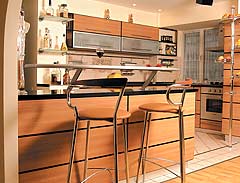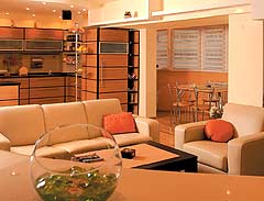 S-a impus de la sine eliminarea unei dependinte. Insa proprietarul ne marturiseste ca, de la bun inceput, si-a dorit un apartament cu patru camere pentru a putea obtine un living generos. Este prima incapere pe care o vezi cand intri in casa si este important sa fie mare, spatioasa si sa-ti dea senzatia de libertate de miscare. Bucataria, despartita de living printr-un mic bar cochet, este realizata dupa desenele arhitectului Gheorghe Popinceanu