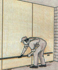 se indoaie laturile in unghi drept. Izolatia se preseaza de perete, iar