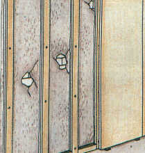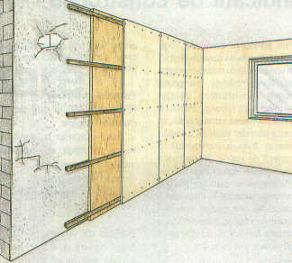 fi prinse pe un raster din sipci de lemn, fixat de perete cu dibluri. Mai intai