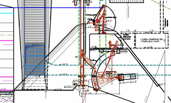 Pe intradosul culeei sunt prevazute golurile de montaj pentru ghidajele batardoului si vanei . La cota 259.05 mdMN se afla consola pentru prinderea articulatiei vanei segment.