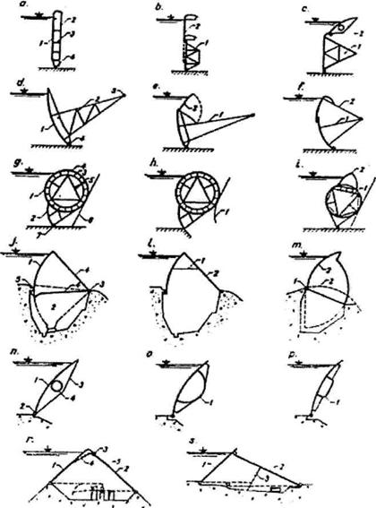Fig Tipuri de stavile a) stavila plana; b) stavila plana dubla-carlig; c) stavila plana cu clapeta; d) stavila segment; e) stavila segment cu clapeta; f) stavila segment dubla; g) stavila cilindrica; h)stavila cilindrica mixta; i) stavila cilindrica cu clapeta; j) stavila sector plutitoare; l)stavila sector inecata; m) stavila tambur; n) stavila clapeta; o) stavila clapeta-burta de peste; p) stavila clapeta casetata; r) stavila acoperis; s) stavila capcana de urs.