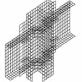 În figura 1.5 se prezinta modelarea cu elemente finite a nodului compus asa cum este el alcatuit cu armatura rigida, elastica si beton. Rezultatele analizei s-au concretizat în valorile eforturilor din armaturi si beton, releveul fisurilor, deformatii.
