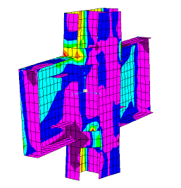 - în cazul analizat efortul maxim se regaseste la nivelul îmbinarii grinzii cu stâlpul existând totusi un efort semnificativ si în interiorul panoului nodului;