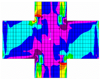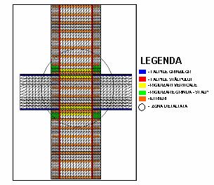 Pentru o mai buna cunoastere a comportarii nodului compus s-a analizat cu ajutorul programului de analiza nelineara BIOGRAF , starea de eforturi din nod într-o sectiune verticala prin acesta la nivelul panoului nodului. S-a presupus ca aceasta zona se gaseste în stare plana de tensiuni pe grosimea stâlpului.