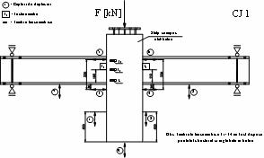 Încercarea monotona a fost efectuata cu scopul determinarii limitei elastice pentru nodul compus CJ1 si pentru a efectua un studiu comparativ al comportarii aceluiasi tip de nod sub sarcini de tip diferit monotone si ciclice. Determinarea limitei elastice s-a efectuat pe baza prevederilor procedurii ECCS, pornind de la diagrama forta - deplasare medie. Deplasarea medie a elementului a fost calculata ca media aritmetica a deplasarilor înregistrate de captorii d1 respectiv d2. Dispunerea aparatelor pentru înregistrarea comportarii elementelor este prezentata în fig. 2.1.