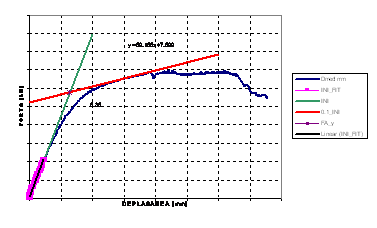 Pentru stabilirea limitei elastice s-a apelat la utilizarea programului EXCEL, reprezentându-se diagrama efort deplasare medie respectiv tangentele la aceasta curba. Reprezentarea grafica respectiv valoarea deplasarilor ey care corespund limitei elastice sunt prezentate în figura 2.2.