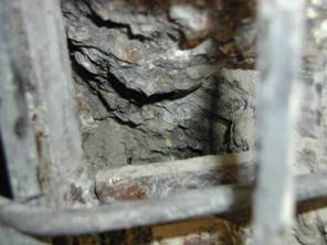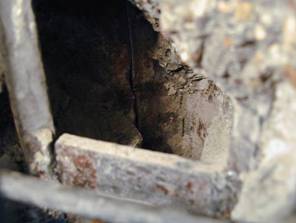 Foto 3 - Fisurarea în dreptul sudurii a rigidizarii Verticale dintre talpile stâlpului |