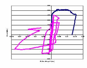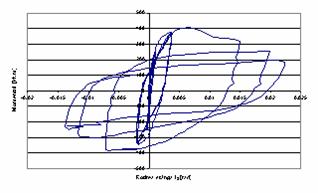 Energia disipata în primele cicluri pâna la atingerea limitei elastice este nesemnificativa înregistrând o crestere minora de la un ciclu la altul. Cele trei cicluri efectuate la 2ey arata ca energia disipata scade de la un ciclu la celalalt fiind datorata unor degradari structurale care au loc. La cele 3 cicluri efectuate pentru deplasari de 4ey se constata ca în al doilea ciclu are loc un consum de energie mai ridicat decât în celelalte, acest ciclu corespunzând momentului de cedare al rigidizarilor verticale. Tendinta descrescatoare de consum a energiei de la un ciclu la cecalalt se regaseste si la ultimele 3 cicluri efectuate pentru deplasari de 6ey.