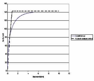 Deplasarile înregistrate au fost la nivelul inferior respectiv superior al stratului echivalent. Modelul studiat si curba încarcare - deplasare obtinuta este prezentata în figura 6 comparativ cu cea obtinuta din încercarea experimentala de tip "push-out" pentru conectori de tip Nelson.