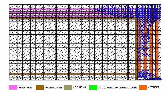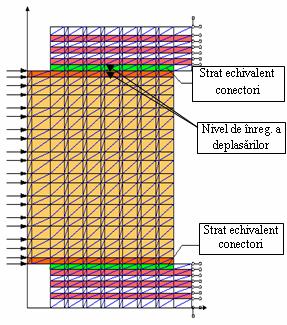 Figura 3.11 - Modelarea cu elemente finite a unei încercari de tip "push-out" - cu straturi echivalente |
