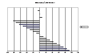 În figura 3.15 este prezentata evolutia eforturilor unitare sx în cele trei rânduri de armatura în momentul ruperii, pe lungimea grinzii.