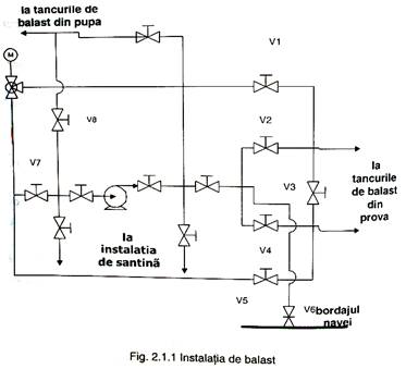 a. Instalatii de balast generale Se întâlnesc la navele de transport marfuri generale, cu scopul de a realiza modificarea pescajului mediu si de a corecta înclinarile, longitudinala si transversala.