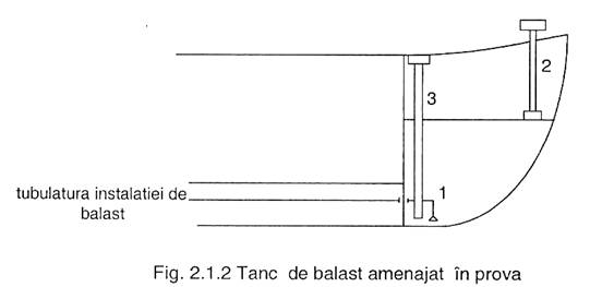 Patrunderea apei în corpul navei se face prin valvula Kingston sau priza de fund. La celalalt capat al instalatiei se amenajeaza tancul de balast cu elementele lui (fig. 2.1.2): tubulatura de umplere si golire (1), tubulatura de aerisire (2), tubulatura de masura si control (3).