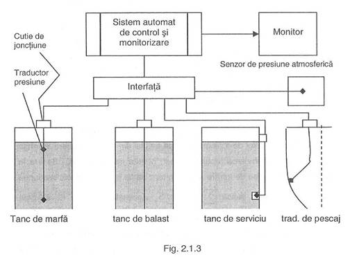 De regula astfel de sisteme sunt integrate într-un sistem principal de control prin intermediul unei interfete, care face legatura între traductoarsle existente în tancuri si un calculator central. Produsele de acest fel existente pe piata, trebuie sa prezinte un grad ridicat de performanta, siguranta si precizie. Montarea traductoarelor în tancurile monitorizate, trebuie sa corespunda clasei de protectie IP68 (prima cifra 6 semnifica protectie totala contra patrunderii prafului, iar cea de-a doua ne indica rezistenta la imersiune prelungita). Produsele existente pe piata pot realiza monitorizarea simultana a circa 80 de tancuri (fig. 2.1.3).