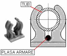 reveniti pe traseul fiecarei serpentine si fixati clemele de blocare a plasei si tubului. In functie de tipul clemei folosite, plasa de armare se fixeaza pe sub clema sau pe deasupra acesteia (vezi figurile urmatoare).Clemele au rol de fixare a traseului serpentinei si de a distanta ansamblul plasa - tub fata de placa de polistiren pentru a permite inglobarea in sapa de beton