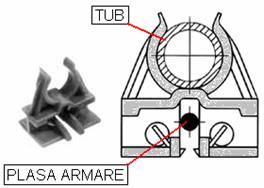 asezati plasa metalica de armare peste tub, pe toata suprafata camerei. Suprapuneti tronsoanele alaturate de plasa pe cca. 10 cm si legati-le intre ele cu « soricei » de plastic sau cu sarma. Nu mai este necesara legarea plasei de tub si nici cleme de blocare