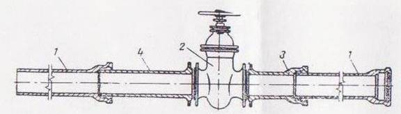 1.tub cu mufa; 2.armatura cu flanse 3.tub de fonta cu mufa si flansa ; 4. tub din fonta cu flansa.