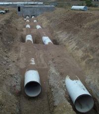 Ultimul strat de pamant de la dundul santului (100-150 mm) sw sapa cu putin timp inaintea coborarii conductelor, pentru a le pozape un teren sanatos, nedegradat de ploi . Conductele se aseaza pe un pat de egalizare din nisip.