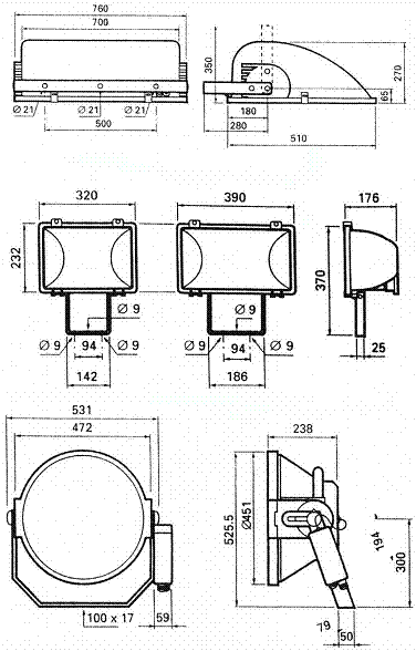 Figura 12Aparate de iluminat utilizate în iluminatul tunelurilor