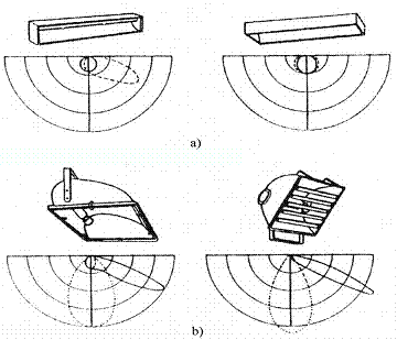 Acestea emit fluxul luminos într-un unghi solid a carui deschidere poate varia de la 2x5° (proiectoare intensive) pâna la 2x60° (proiectoare extensive), alegerea facându-se în functie de obiectivul de iluminat.