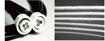 Se disting 2 tipuri majore de cabluri cu fibra optica: cele cu emisie punctuala(fig. 5) la care se ataseaza distribuitorul si cele cu emisie laterala, la care invelisul exterior al cablului este transparent(fig.6) si care pot inlocui tuburile fluorescente.