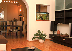Desi nu s-a pus problema lipsei de spatiu, proprietarii, iubitori ai spatiilor deschise, au considerat ca, prin spargerea zidurilor sub forma de cupola, camerele vor castiga si mai mult in dimensiune, lucru care s-a si intamplat, prin crearea unor bolti in pereti. Spatiul aferent livingului si cel al salonului comunica, creand o zona comuna, destinata relaxarii si intampinarii oaspetilor.