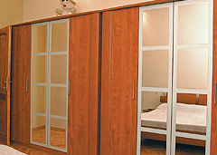 Dimensiunile intregii locuinte sunt puse in valoare de prezenta spoturilor si a aplicelor care lumineaza camerele la diferite intensitati. Dormitorul este mobilat cu piese de la Mobexpert, atat patul cat si dulapurile fiind realizate din lemn masiv. De asemenea, cuierul din dormitor, realizat din lemn si metal, este achizitionat de la Mobexpert.