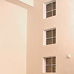 Miniferestrele realizate in zid existau dinainte de achizitionarea locuintei si, pentru ca rolul lor nu este pur decorativ, ci asigura si un procent de reflectare a luminii dintr-o camera in alta, au fost pastrate.