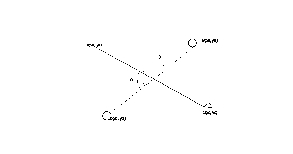 Daca am aincerca determinarea coordinatelor punctului P prin intersectia inapoi folosind unghiurile a si b masurate in teren, determinarea nu ar avea nici un control deoarece din P nu se poate viza si al patru-lea punct C.