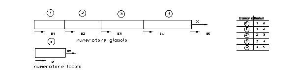 Informatia cu privire la conectivitatea elementelor poate fi reprezentata convenabil ca in fig. 4. Suplimentar se poate da un tabel de conectivitate a elementelor. In acest tabel capetele 1 si 2 se refera la numerele locale de nod ale unui e.f. si, corespunzator, numerele de nod de pe corp (structura) sunt denumite numere globale. Conectivitatea stabileste astfel corespondenta local-global.