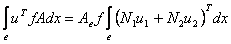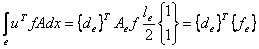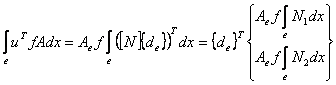 Vectorul fortei masice de element are o explicatie fizica simpla. Deoarece Aele este volumul elementului si f este forta masica pe unitatea de volum, vedem ca Aelef da forta masica totala care actioneaza pe element. Factorul ½ in ec. (2.30) arata ca forta masica totala este egal distribuita la cele doua noduri ale elementului.