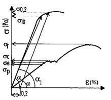 limita de elasticitate tehnica (s - va reprezenta efortul pentru care modulul de elasticitate secant va inregistra o reducere de 10%, deci unghiul a corespunzator modulului de elasticitate redus va fi de forma: