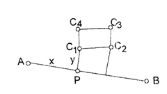 Metoda consta in materializarea pe teren a punctului C al constructiei prin aplicarea unui segment x in lungul aliniamentului ce uneste cele 2 puncte de sprijin (A, B) iar din punctul P astfel obtinut a unei perpendiculare de lungime y.