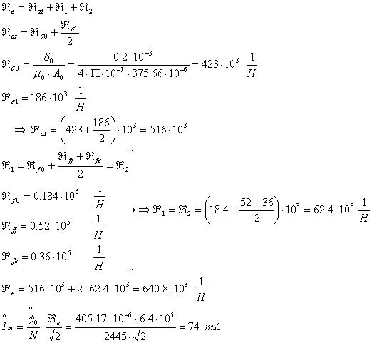 d) Calculul exact al reluctantei echivalente si al curentului de magnetizare