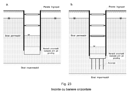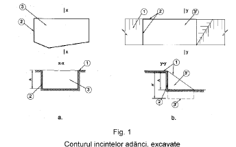 Aceste excavatii pot fi realizate in incinte conturate pe toate laturile sau numai pe unele din acestea (fig. 1).