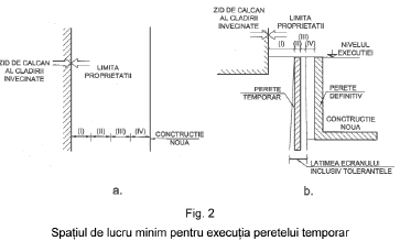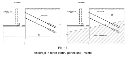 Sunt necesare verificari ale acestor lucrari, avand in vedere existenta in apropiere a unei incinte adanci. Eforturile si deformatiile trebuie sa fie sub valorile admisibile stabilite pentru constructiile sau utilitatile existente.